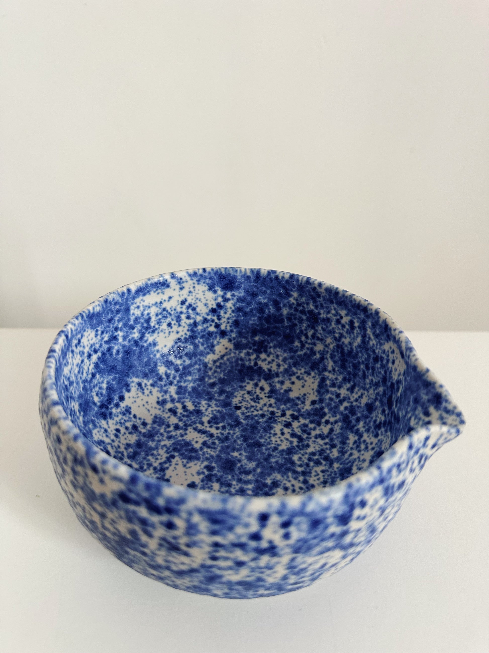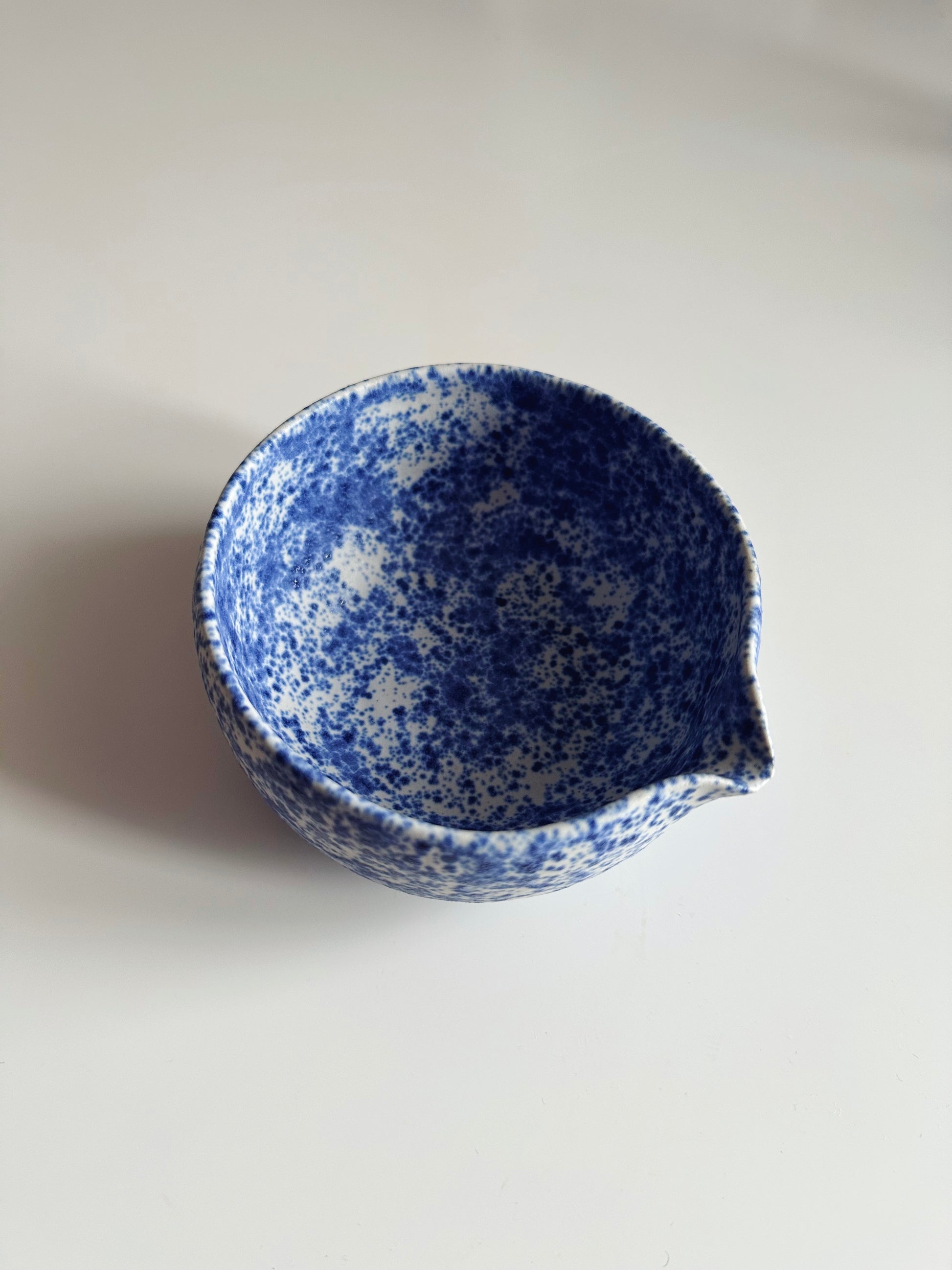 Bol matcha bleu moucheté tourné et émaillé à la main