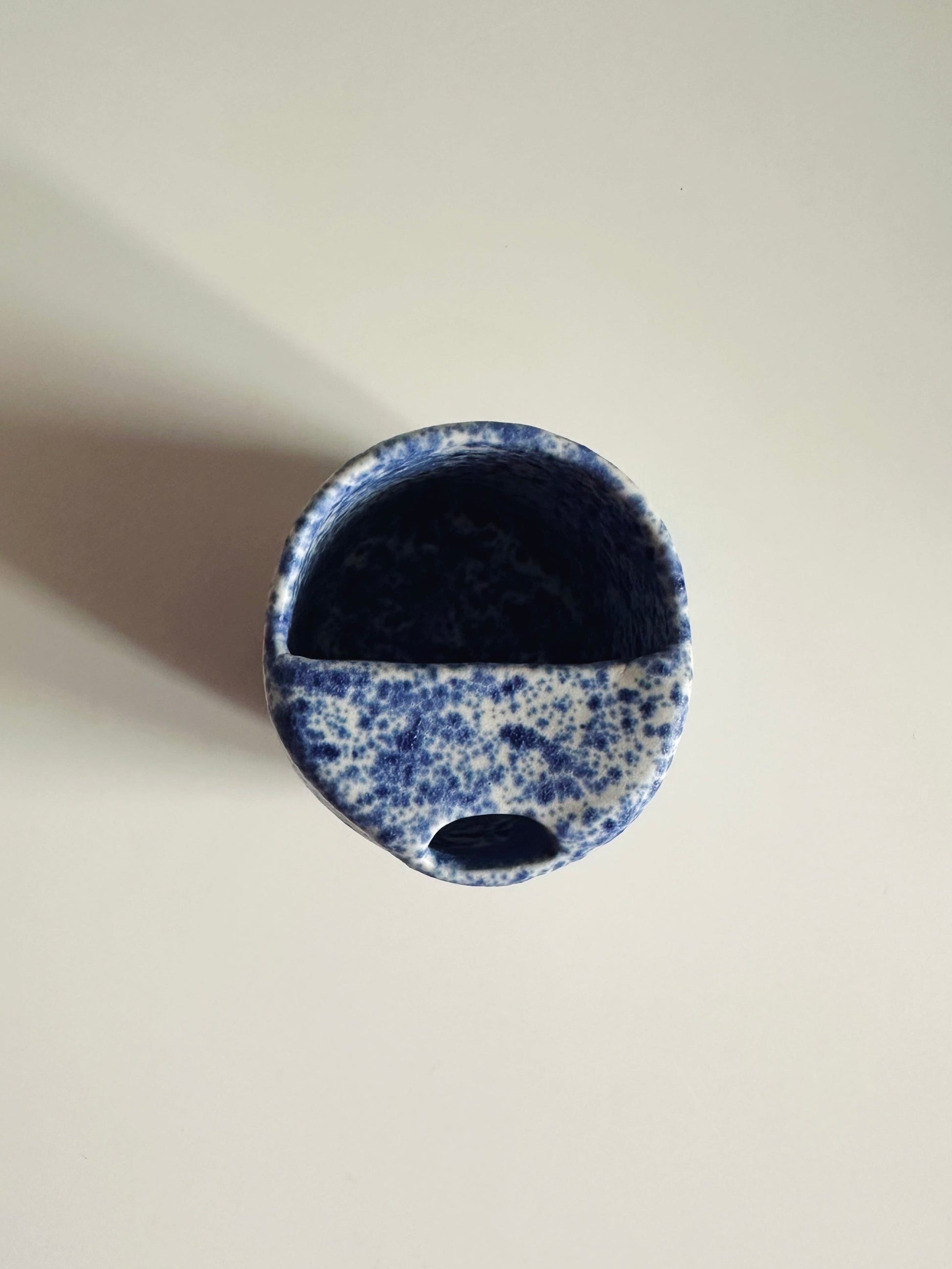 Mug à emporter bleu moucheté façonné et émaillé à la main