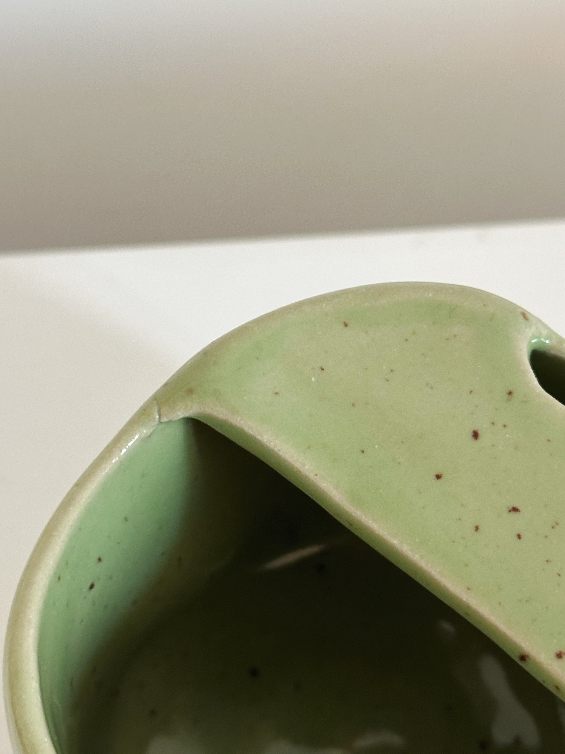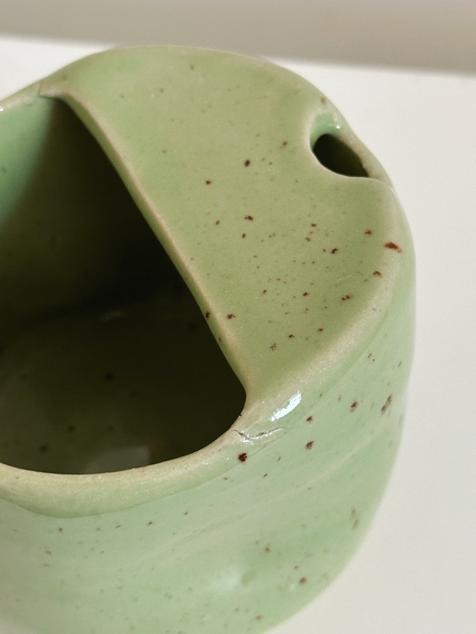 Défaut : cette pièce comporte deux fines fissures visibles sur les rebords du mug. Ces micro-fissures n'altèrent pas la solidité ou l'usage de la pièce. Elles sont purement esthétiques.
