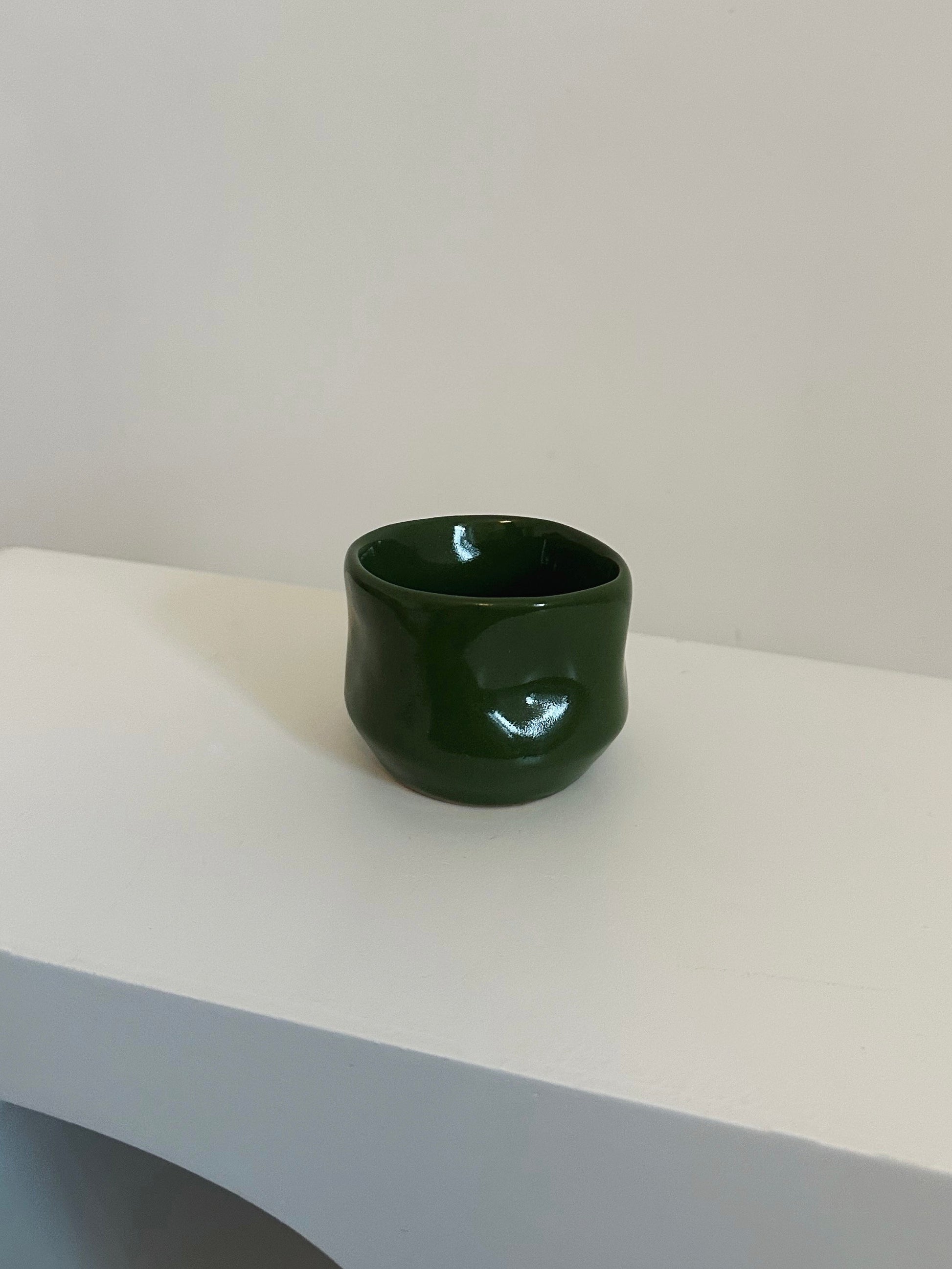 Tasse espresso verte entièrement façonnée et émaillée à la main